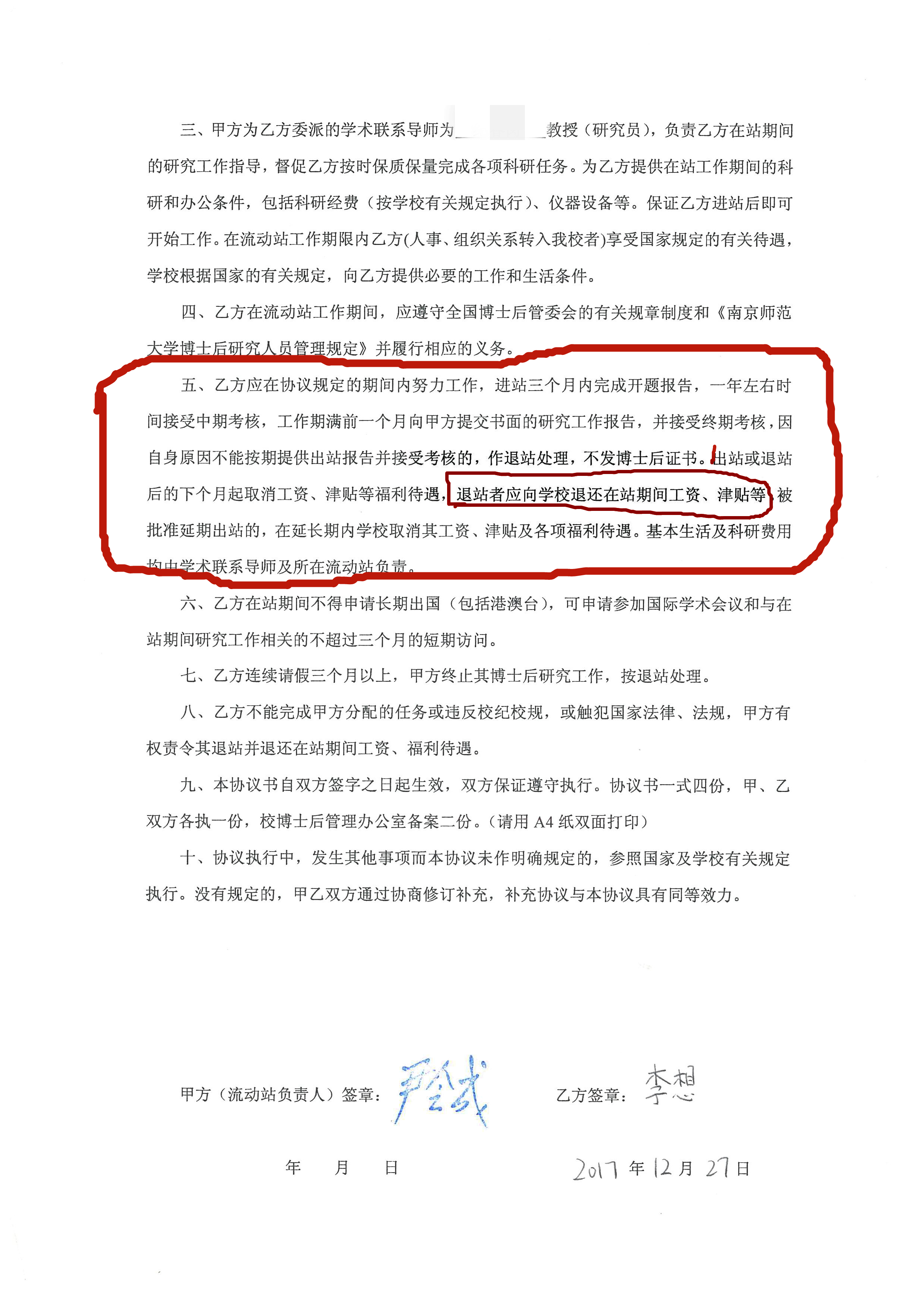 I got my PhD degree in 2017, and went to Nanjing Normal University for my first job——postdoctoral fellow. Since I was young and not experienced in law, I signed the contract. But this contract turns out to be a complete modern slavery system!